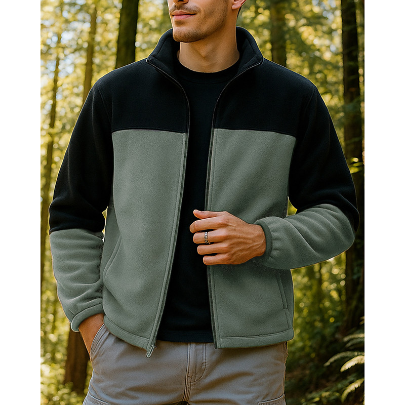 Men's Fleece Jacket Winter Coat Thermal Jacket Winter Outdoor Patchwork Thermal Warm Top Black Green Khaki Grey