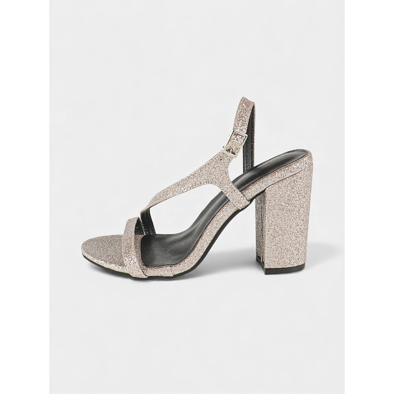 Women's Pink Iridescent Open-Toe Heels with Chunky Block Heel - Stylish High Heels for Nightlife Parties
