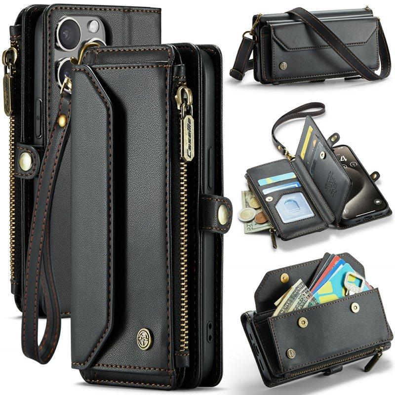CASEME Plånboksfodral Konstläder till iPhone 15 Pro - Svart