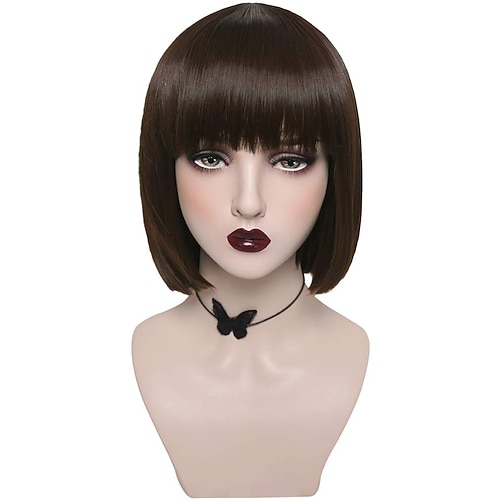 Bob-Perücke mit Pony, natürlich modische Bob-Perücken für Frauen, süße farbige Kunsthaar-Perücke für den Alltag und Halloween