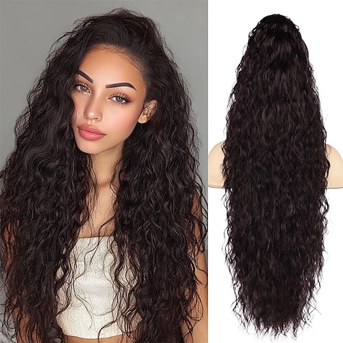 Haarverlängerung mit Clipverschluss, 76 cm (30 Zoll), sicherer Halt, kein Verfilzen, lange, gewellte, natürlich aussehende Kunsthaar-Pferdeschwänze für den täglichen Gebrauch (schwarzbraun, 76 cm).