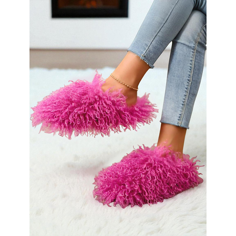 Women's Fuzzy Rose Pink Faux Fur Slippers with Cozy Plush Lining, Fluffy Indoor Winter House Shoes for Warmth Comfort, Fun Statement Style for Home, Lounge Holiday Relaxation