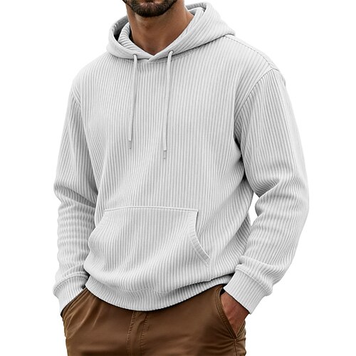 Per uomo Felpa con cappuccio Velluto a coste Aalbicocca Rosso bordeaux Nero Bianco Blu marino Con Cappuccio Semplice Tasca a marsupio Testurizzato Sport Outdoor Casuale Quotidiano Streetwear Cool