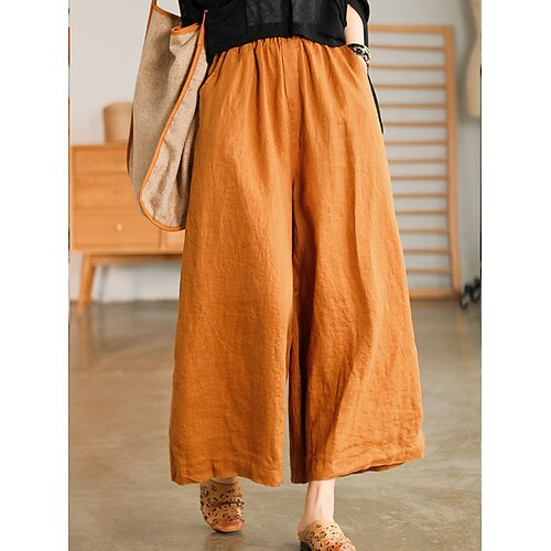 Damen Breites Bein Ausgebeult Abgeschnittene Hose Lang Baumwolle Tasche Ausgebeult Mikro-elastisch Hoher Taillenbund Strassenmode Einfach Outdoor Urlaub Perlweiss Schwarz M L Sommer Frühling