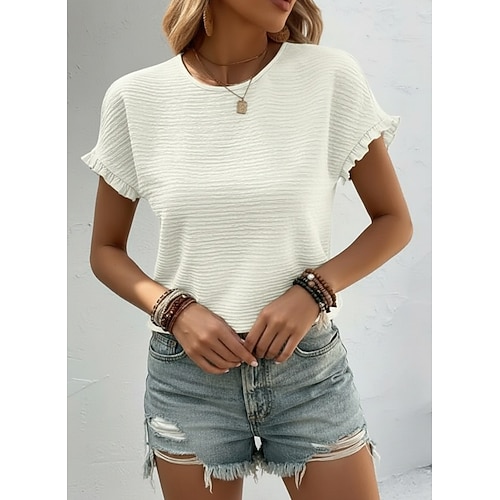 maglietta da donna elegante moda casual volant manica corta normale top girocollo quotidiano bianco rosa cachi estate primavera autunno