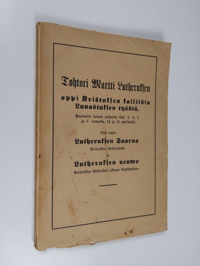 Martti Luther : Tohtori Martti Lutheruksen oppi Kristuksen kalliista lunastuksen työstä, Paavalin sanain johdosta Gal. 1:4, 5 ja 3 luvussa, 14 ja ...