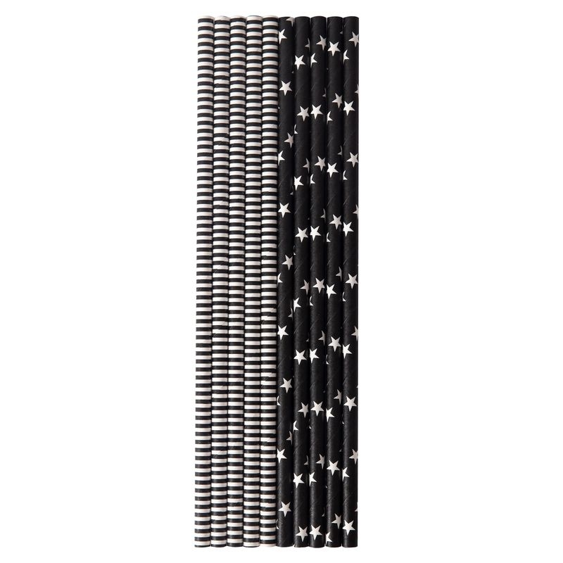500 Bio Stohhalme Papier Trinkhalme 20 cm x Ø 6 mm Black & White
