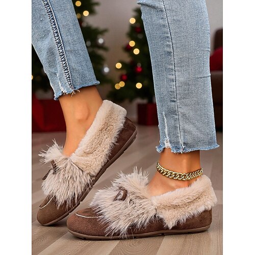 Per donna Mocassini Mocassini classici Scarpe morbide Scarpe Comode Natale Quotidiano Fiocco Tacco basso Punta Tonda Casual Comfort Pelliccia Sintetica Finta pelle scamosciata Mocassino Rosso