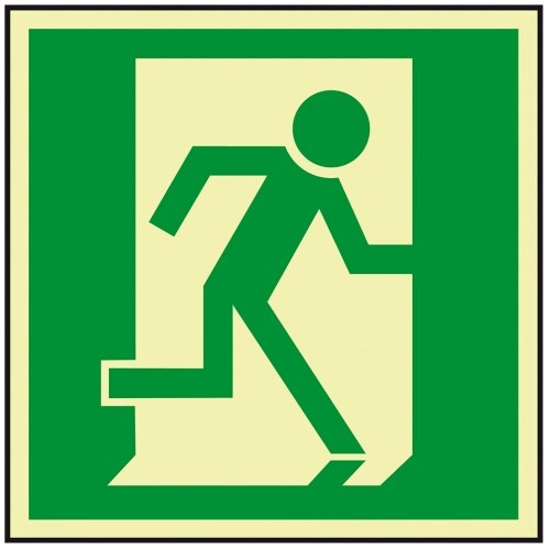 Aufkleber I PERMALIGHT power langnachleuchtend Rettungszeichen Notausgang, für Panikstangen links, 75x1000mm, ASR A1.3 ISO 7010 E001