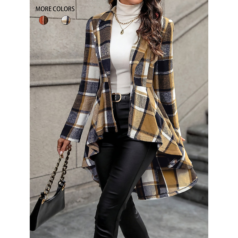 Women's Winter Jacket Comfortable Breathable Print Open Front Casual Plaid Vacation Street Casual Daily Wear Open Front Long V Neck Regular Fit Long Sleeve Outerwear Yellow Red Khaki Spring Fall