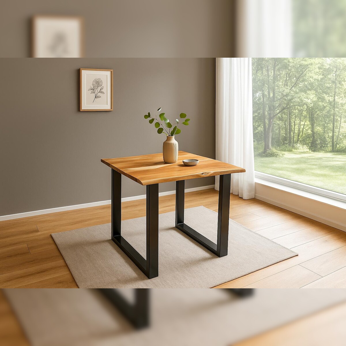 Möbelliebling Esstisch Baumkante massiv Akazie naturfarben 90 x 90 schwarz QUINN