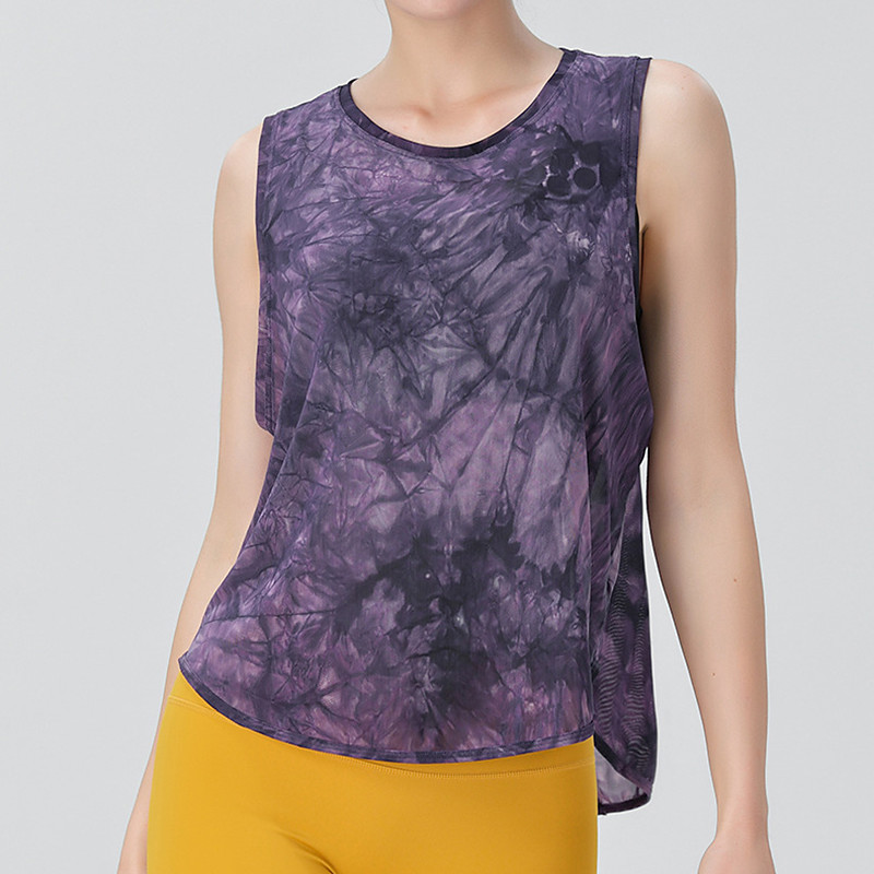 Women's Tie Dye Tank Top Workout Tops Loose Fit Elastic Sweat-Wicking Breathable Tennis Pickleball Yoga Crew Neck Top Black Dark Purple Blue Tennis Clothing