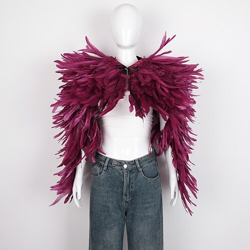 Karneval 2026 Rio Karneval Samba Zubehör Damen langer roter Federumhang mit Bandbindung Brasilien Festival Kostüm