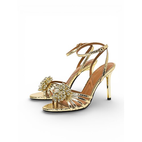 sandali con tacco alto e strass dorati da donna, eleganti scarpe eleganti con cinturino per gli invitati ai matrimoni alla moda in città