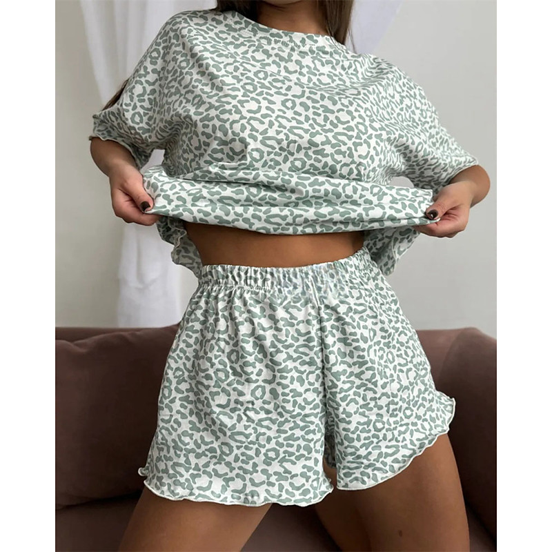 Women's Pajamas Loungewear Pajama Set Pajama Shorts Fashion Casual Comfort Graphic Pure Color Elastic Waist Pant Shorts Vacation Home Daily Short Sleeve Crew Neck Pink Green Gray Summer Spring