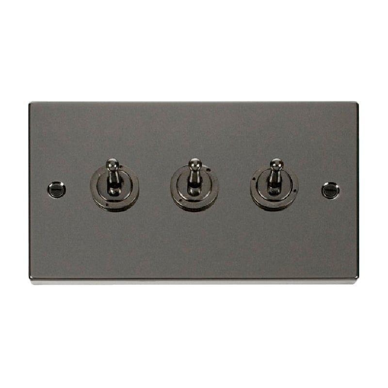 Click Deco 3 Gang 2 Way 10AX Toggle Switch Black Nickel