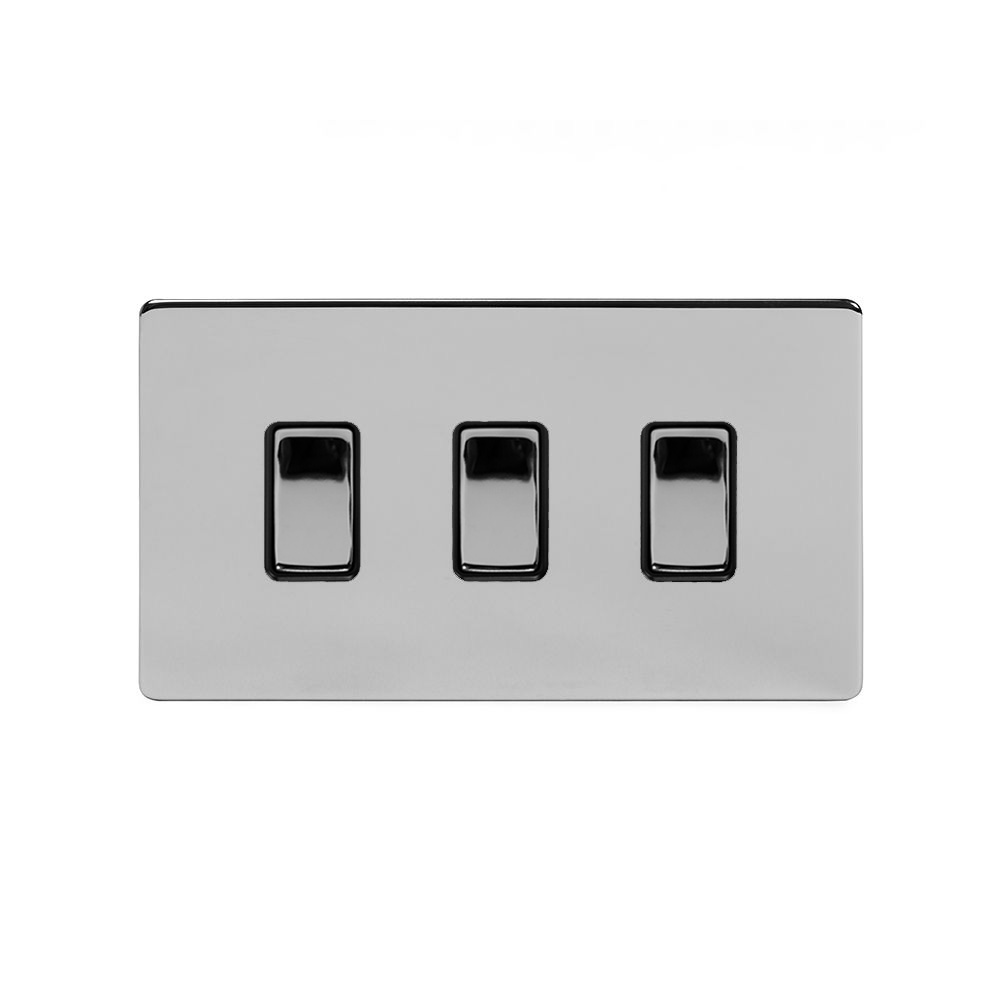 Soho Lighting Polished Chrome 3 Gang Switch With 1 Intermediate (2 x 2 Way Switch with 1 Intermediate) Bk Ins Screwless - Size: H 86mm X W 146mm