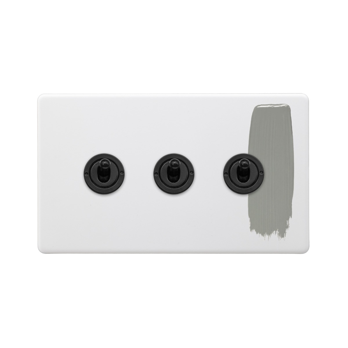 Soho Lighting Primed Paintable 3 Gang 2 Way Toggle Switch with Matt Black Switch - Size: 86mm x 146mm x 4.5mm