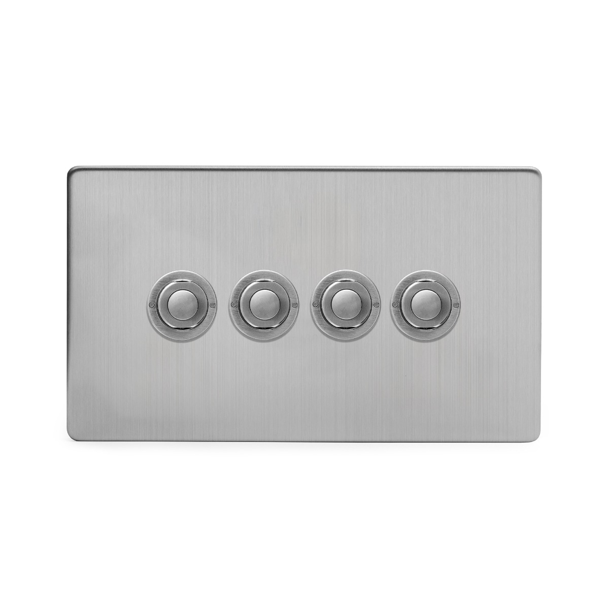 Soho Lighting Brushed Chrome 4 Gang 6A 2 Way Retractive Push Button Switch