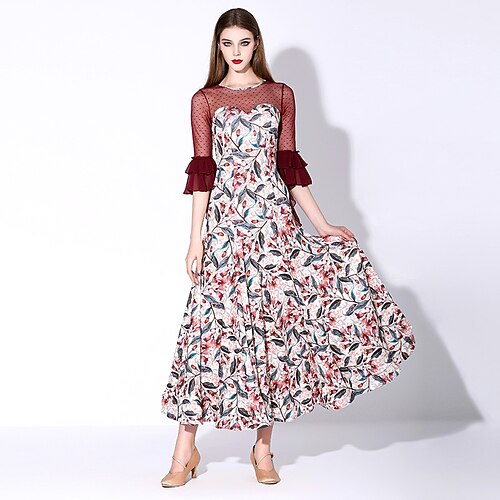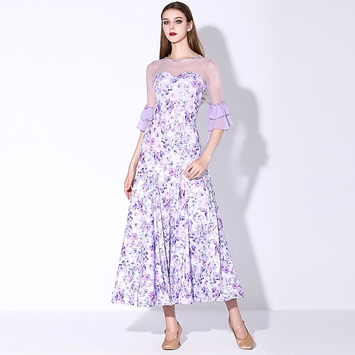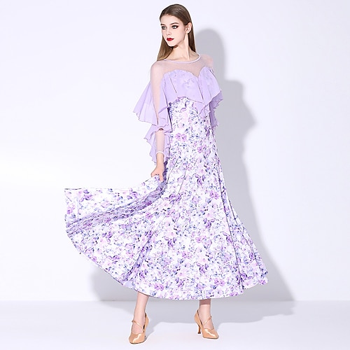 Balli da Sala Vestito Stampa floreale Pieghe Volant Per donna Feste Allenamento Performance Manica Lunga Spandex Poliestere