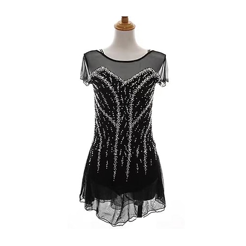 Eiskunstlaufkleid Damen Mädchen Eislaufen Kleid Schwarz Patchwork Offener Rücken Netzstoff Spandex Dehnbar Training Übung Professionell Eiskunstlaufkleidung Thermowarm Kristall / Strass Ärmellos