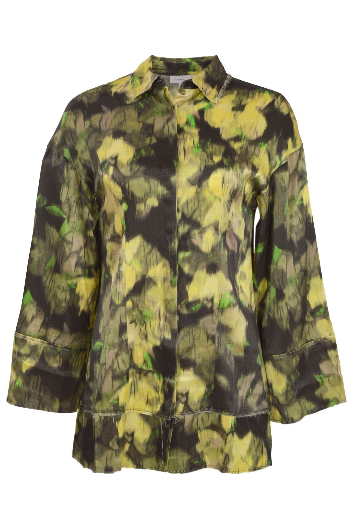 Topshop Womens Watercolour Print Blouse - Green Viscose - Size 8 UK | Topshop Sale | Discount Designer Brands