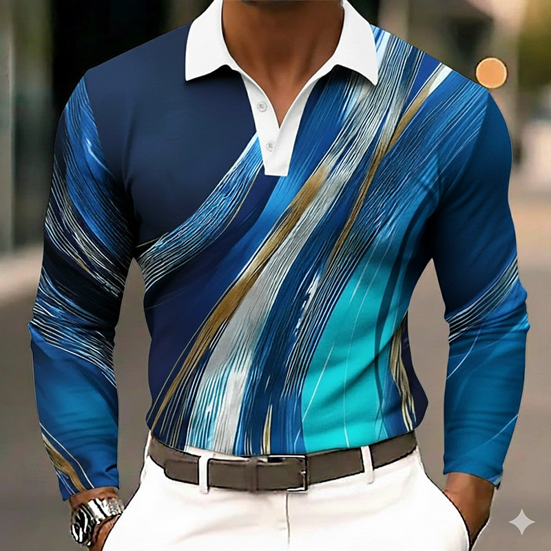 Men's 3D Print Polo Shirts Golf Polos Shirts Long Sleeve Polo Shirts Collar Business Casual Vacation Dailywear Zipper 3D Print Spring Fall Winter Black Ink Blue Dark Purple