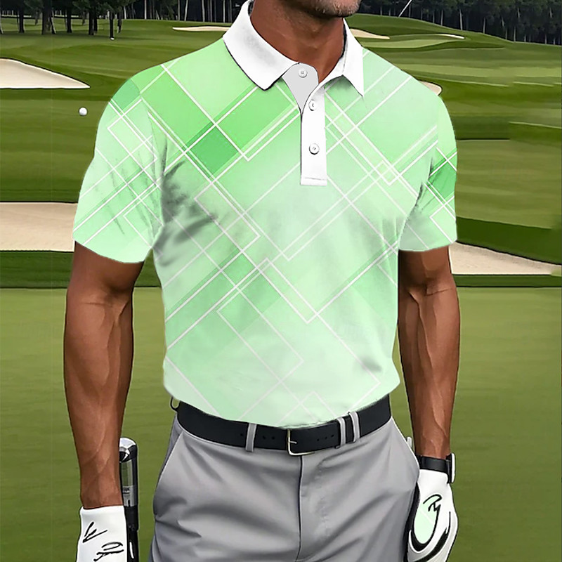 Men's Geometic Polo Golf Polos Shirts Short Sleeve Polo Shirts Lapel Casual Athleisure 3D Print Buttons Summer Blue Purple Green