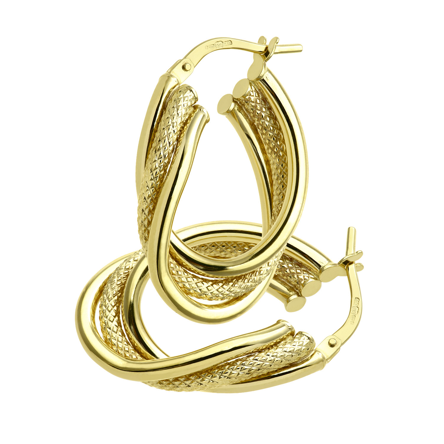 Diamant L'eternel Womens 9ct Yellow Gold Satin and Plain Triple Twist Oval Hoop Earrings - One Size