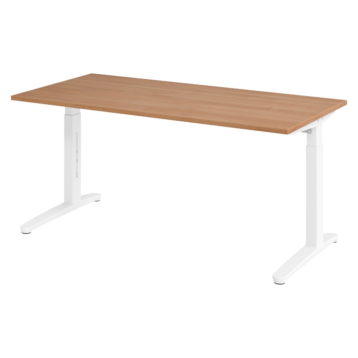 bümö manuell höhenverstellbarer Schreibtisch 160x80 in Nussbaum, Gestell in weiß - PC Tisch höhenverstellbar & groß, höhenverstellbarer Tisch Büro,