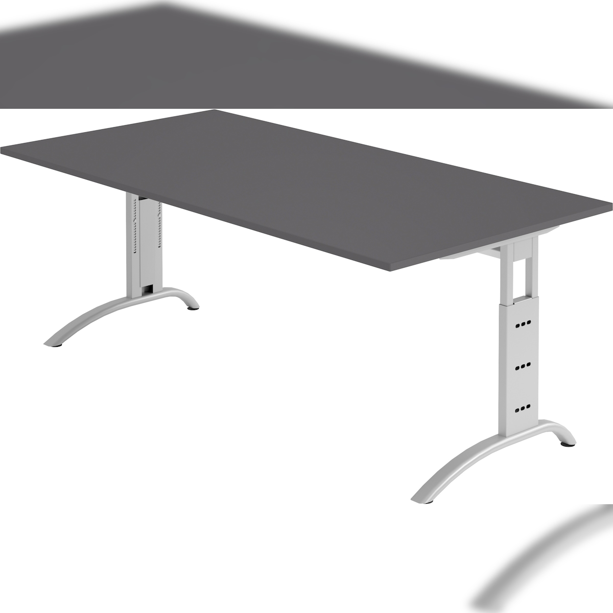 bümö manuell höhenverstellbarer Schreibtisch 200x100 cm in graphit - PC Tisch höhenverstellbar & groß, höhenverstellbarer Tisch Büro, großer