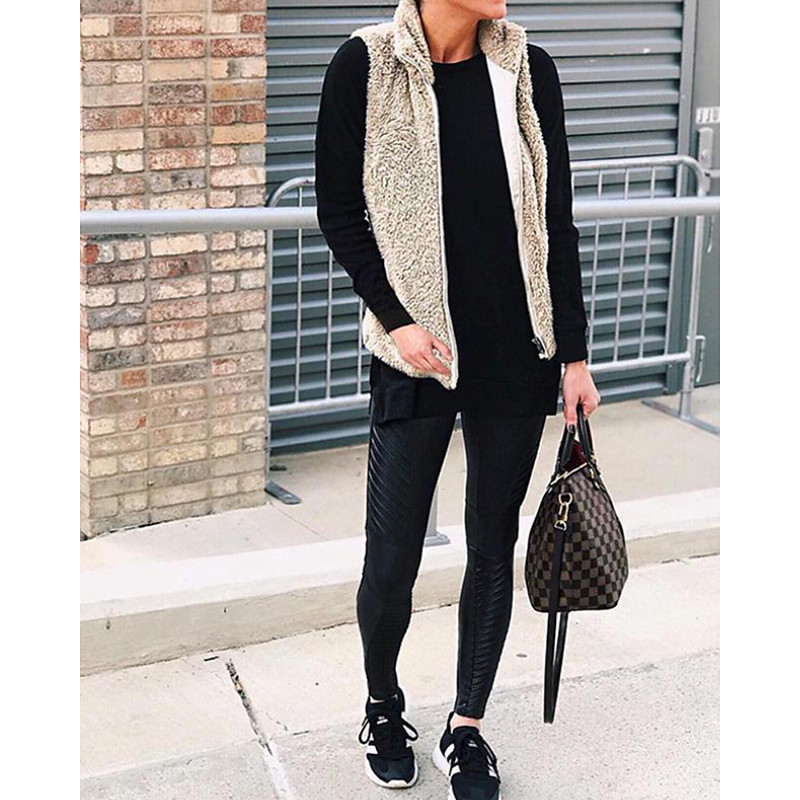 Women's Vest Warm Comfortable Zipper Pocket Fashion Plain Going out Weekend Zipper Regular Stand Collar Regular Fit Sleeveless Outerwear Black White Khaki Fall Winter