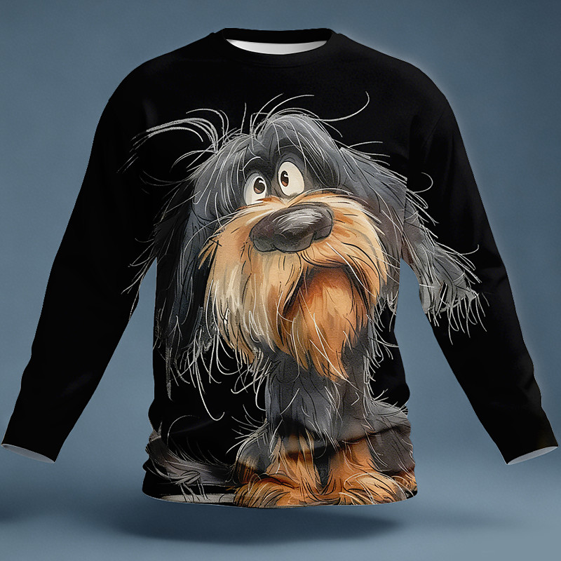 Men's Animal Dog Funny T Shirt Long Sleeve T shirt 3D Print Crew Neck Shirt Fashion Basic Street Casual Daily Blue Black White Summer Spring Clothing Apparel S M L XL XXL XXXL