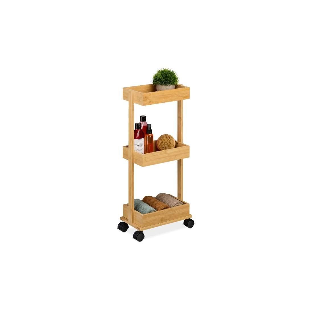 Hylly QUINTAY pyörillä bambu Vaaleanruskea