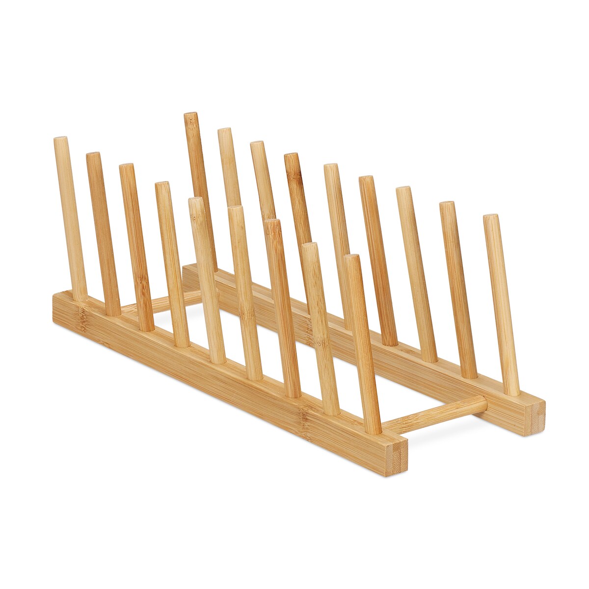 Relaxdays Tellerständer, für 8 Teller, Schneidebretter, Topfdeckel, Abtropfgestell Geschirr, Bretthalter Bambus, natur