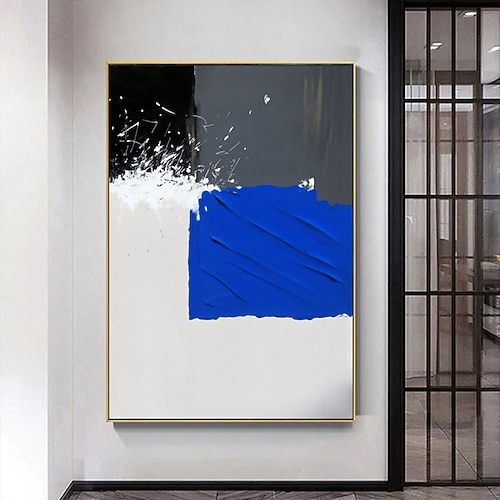 Großes abstraktes Gemälde, handgemalte Wandkunst, blaue Texturmalerei, blaue abstrakte Wandkunst, großes schwarz-blau-weißes abstraktes Gemälde, Boho-Wohnzimmer-Wanddekoration