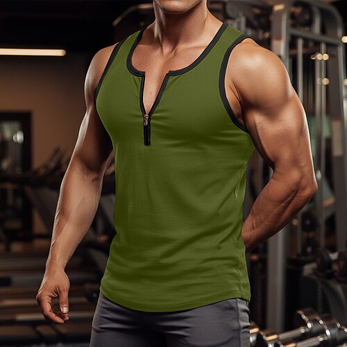 Per uomo Canotta Gilet Canottiera Maglietta senza maniche Senza Maniche Collo a U Estate Blocco di colori Patchwork Moda Classico Confortevole Cerniera Blocco di colore Casuale Palestra Streetwear