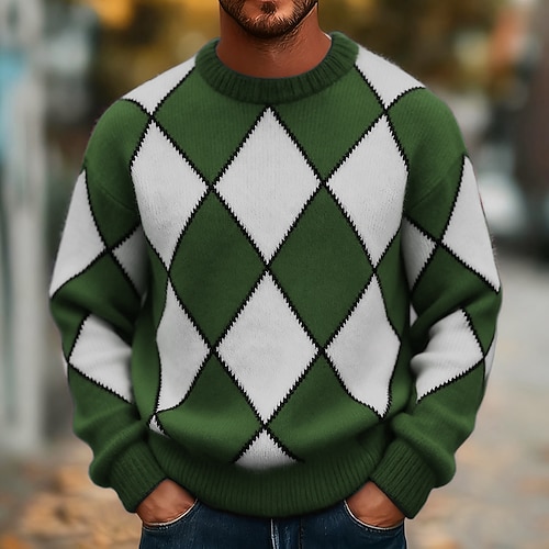 Per uomo Blocco di colori Maglione Maglieria Girocollo Casual Vacanza Casa Streetwear Stampa 3D Lavoro a maglia Tenere al caldo Manica Lunga Primavera Autunno Inverno Rosso Blu Viola