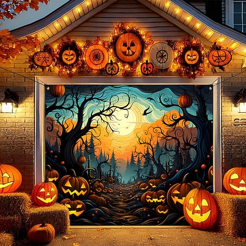 Halloween Copertura per porta del garage Grande appeso Zucca Cimitero 3D Gotico punk oscuro Da serata All'aperto Sfondi di ripresa Yarda Casa infestata Arredamento per la casa