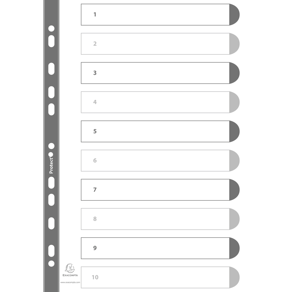Exacompta Register numerisch bedruckt, weißer Karton 160g/qm, 10 Taben, 1-10, DIN A4