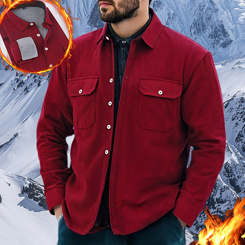 Men's Fleece Shirt Corduroy Shirt Button Up Shirt Cargo Shirt Overshirt Casual Daily Blue Red Green Khaki Long Sleeve Turndown Spring Fall Clothing Apparel Pocket