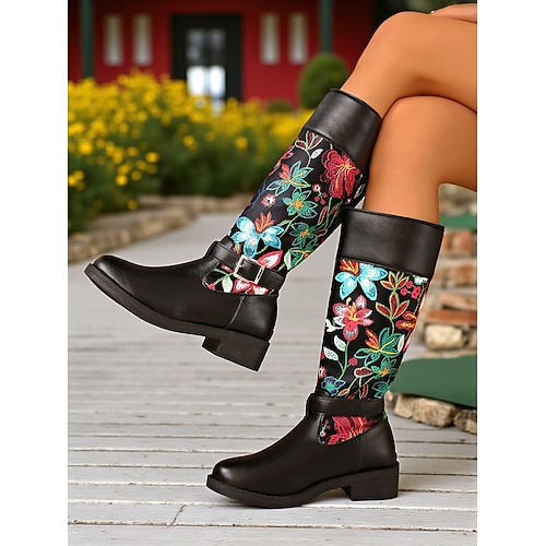 stivali da equitazione da donna in similpelle marrone con fibbia e tela – stivali casual bicolore alti fino al ginocchio per lavoro, viaggi e abbigliamento outdoor