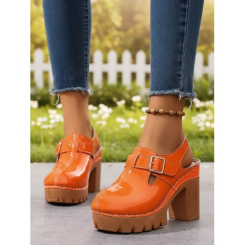 Per donna Casuale Quotidiano Tacco grosso Punta Tonda Casual Minimalismo Finta Pelle Vernice Fibbia Tessuto almond Nero Bianco