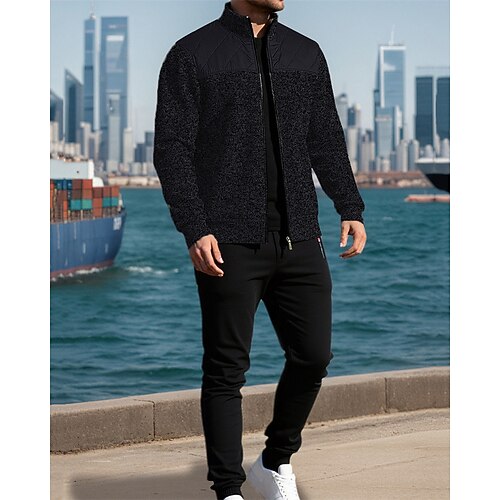 Per uomo Maglia Tuta da Ginnastica Set di abiti Collo alla coreana All'aperto Quotidiano Sportivo Coulisse Tasca Blocco di colori Rosso bordeaux Nero Blu marino Poliestere Abbigliamento sportivo Moda
