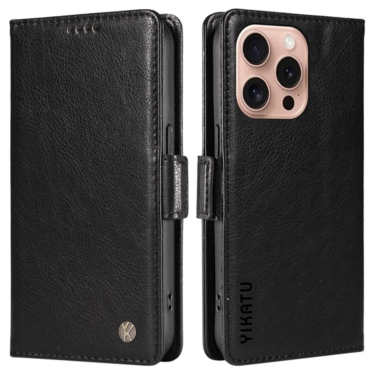 YIKATU iPhone 16 Pro Konstläder Plånboksfodral Litchi Texture - Svart