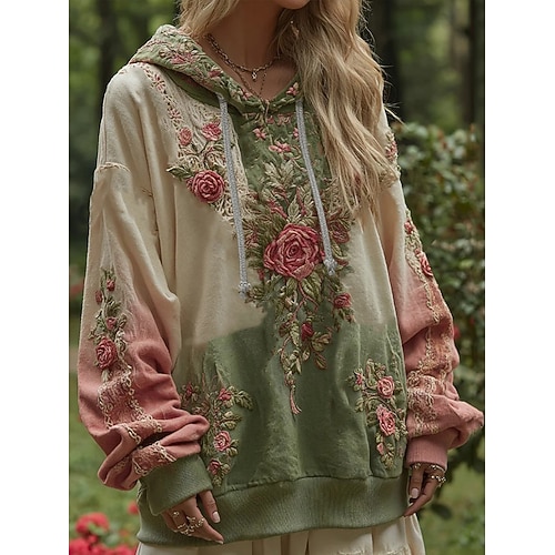 Felpa con cappuccio vintage boho 3D stampata per donna felpa patchwork felpa con cappuccio floreale felpa a maglione elegante calda attiva cappuccio abbigliamento quotidiano da strada patchwork verde