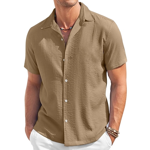Per uomo Camicia Camicia Estiva Camicia casual Camicia da Spiaggia Camicia con Bottoni Blu Cachi chiaro Nero Bianco Blu marino scuro Manica Corta Tinta unica Bavero Casuale Quotidiano Abbigliamento