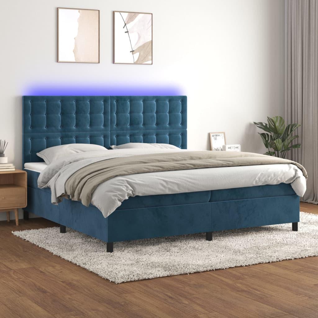 Kontinentalseng med LED-lys 200x200 cm fløjl mørkeblå