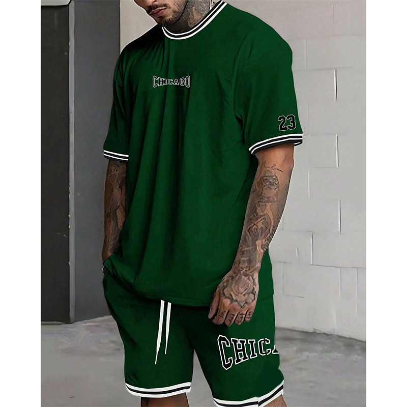 Men's Workout Set Tracksuit T shirt Shorts Set Outfit Set Crew Neck Outdoor Daily Sports Pocket Drawstring 2 Piece Plain Black White Yellow Polyester Activewear Classic Casual Summer
