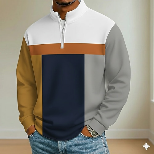 Per uomo Blocco di colori Geometrico Polo Manica Lunga Colletto Mao Casual Vacanza Athleisure Casual Quotidiano Cerniera Stampa 3D Primavera Autunno Blu Verde